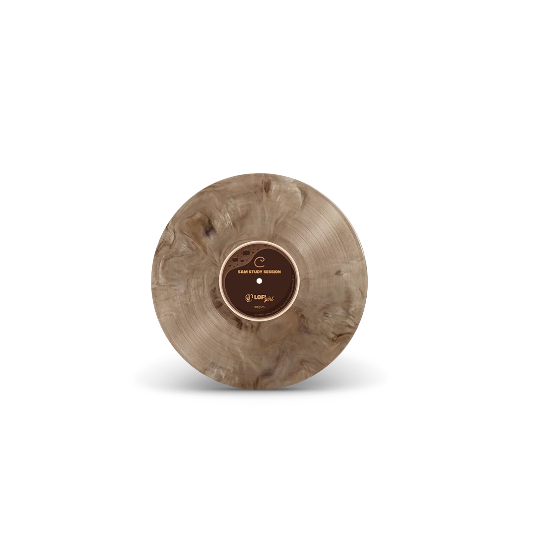Morning Latte Marble : Two stunning 12" Marble LPs with swirling beige and brown tones, uniquely crafted to mirror the warmth of a fresh cup of coffee.