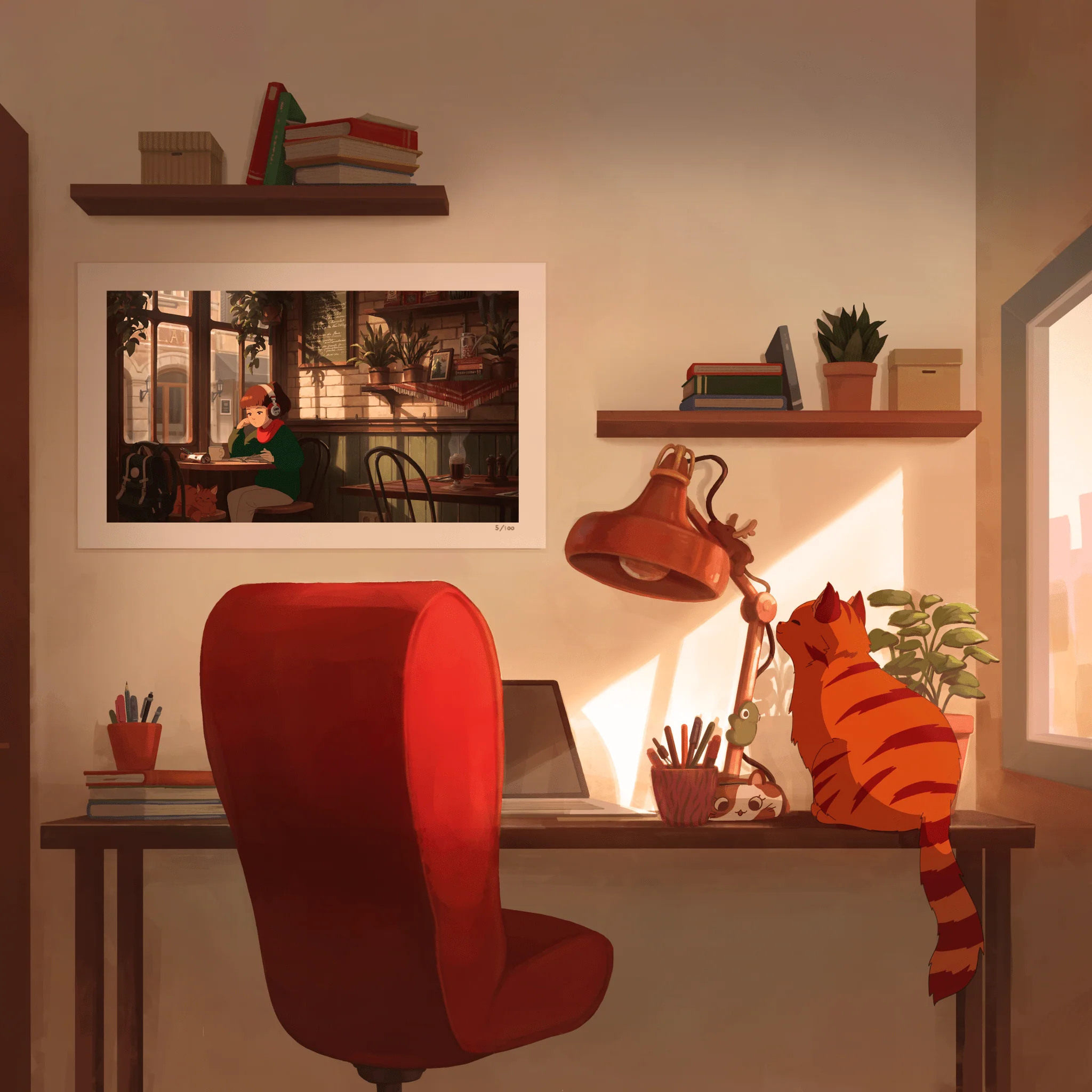 Perfect for anyone who finds inspiration in stillness, this artwork captures the intimate, timeless atmosphere that defines the Lofi Girl universe. ☕🌿