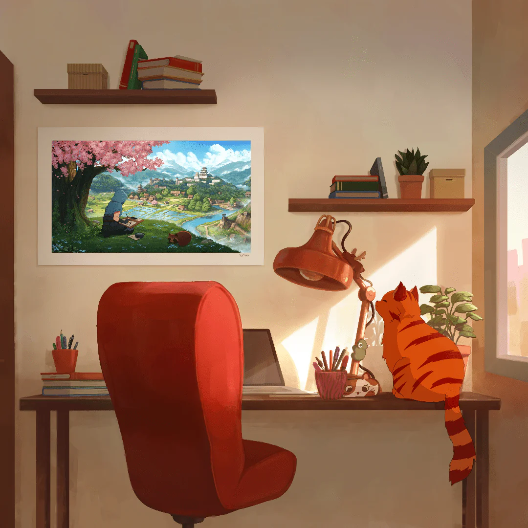 In this limited-edition collaboration between Lofi Girl and Assassinās Creed Shadows, Naoe finds a moment of stillness beneath a canopy of blooming sakura. Painting a delicate Sumi-e as petals drift around her, sheās joined by a playful Tanuki resting nearby ā the tranquil scene framed by distant mountains fading into the soft spring haze.